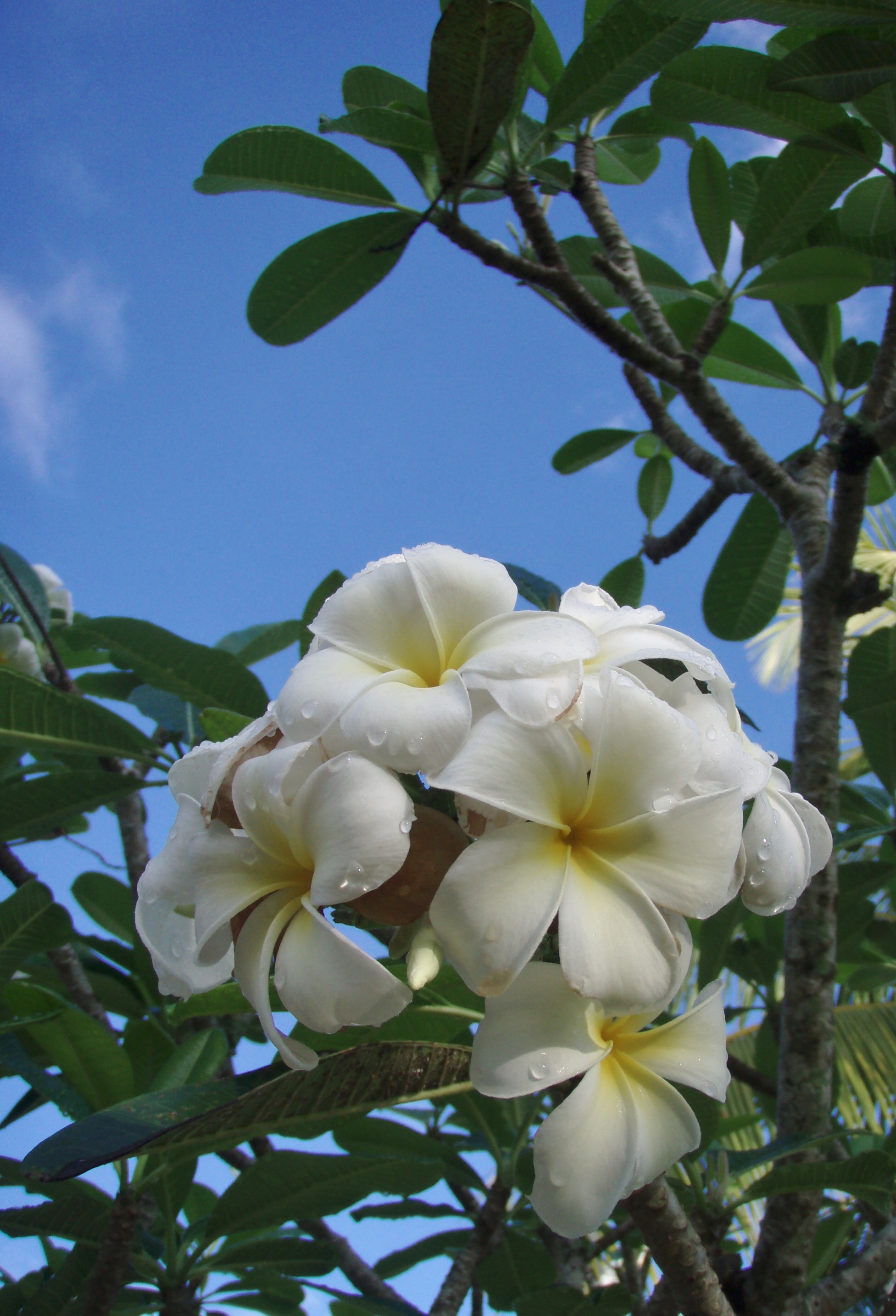 I took these beautiful scented frangipani at a beach resort 2 weekends ago when we went for a church ladies’ retreat. It was in the morning and the sun had yet to dry off the remaining raindrops on the flowers left by an overnight of long-awaited rain.